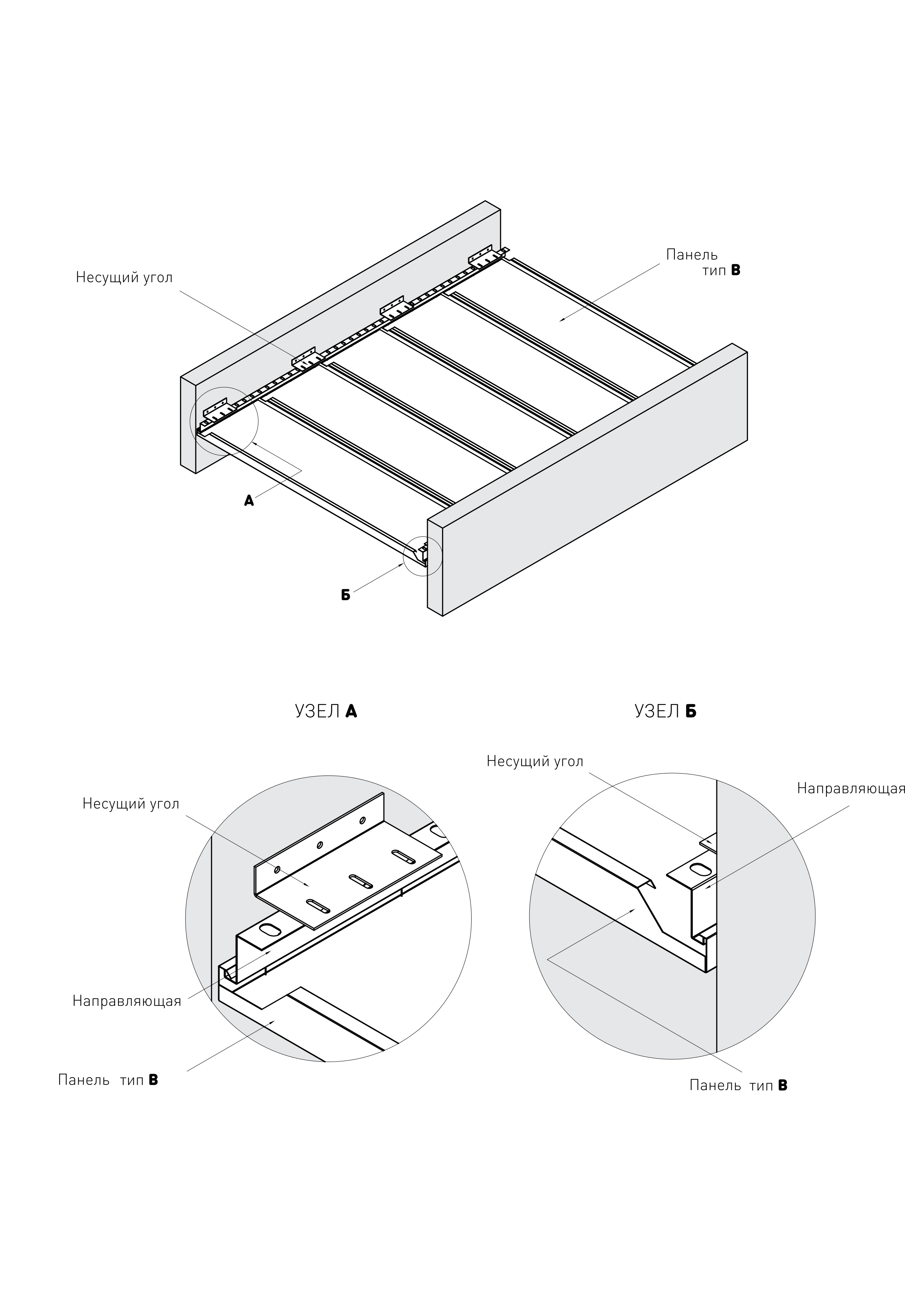 - Z-образный поперечный профиль — крепится к L-профилям и служит основой для панелей.