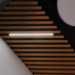 - Установили кубообразные реечные потолки — геометрия, которая задаёт ритм интерьеру