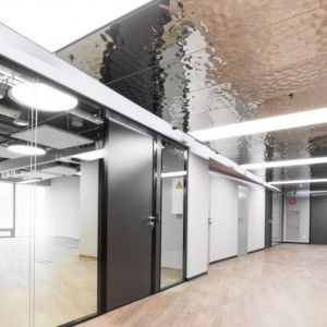 По заданию архитекторов было применено оригинальное (эксклюзивное) решение — изготовлен потолок hook-on из полированной стали.⠀Не остается без внимания и санузел в первоклассном офисе.⠀