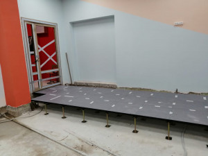 Поставка и монтаж фальшпола из ДСП толщиной 38 мм со сталью снизу и с антистатическим ПВХ сверху в школу №58. Общая площадь 160 м2