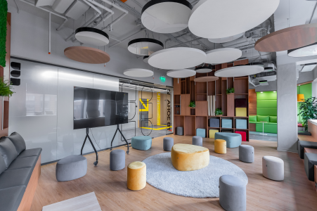 Акустические потолки K&R Design используются в офисах, ресторанах, кафе, образовательных и культурных учреждениях, создавая комфортную атмосферу и улучшая качество восприятия звука.