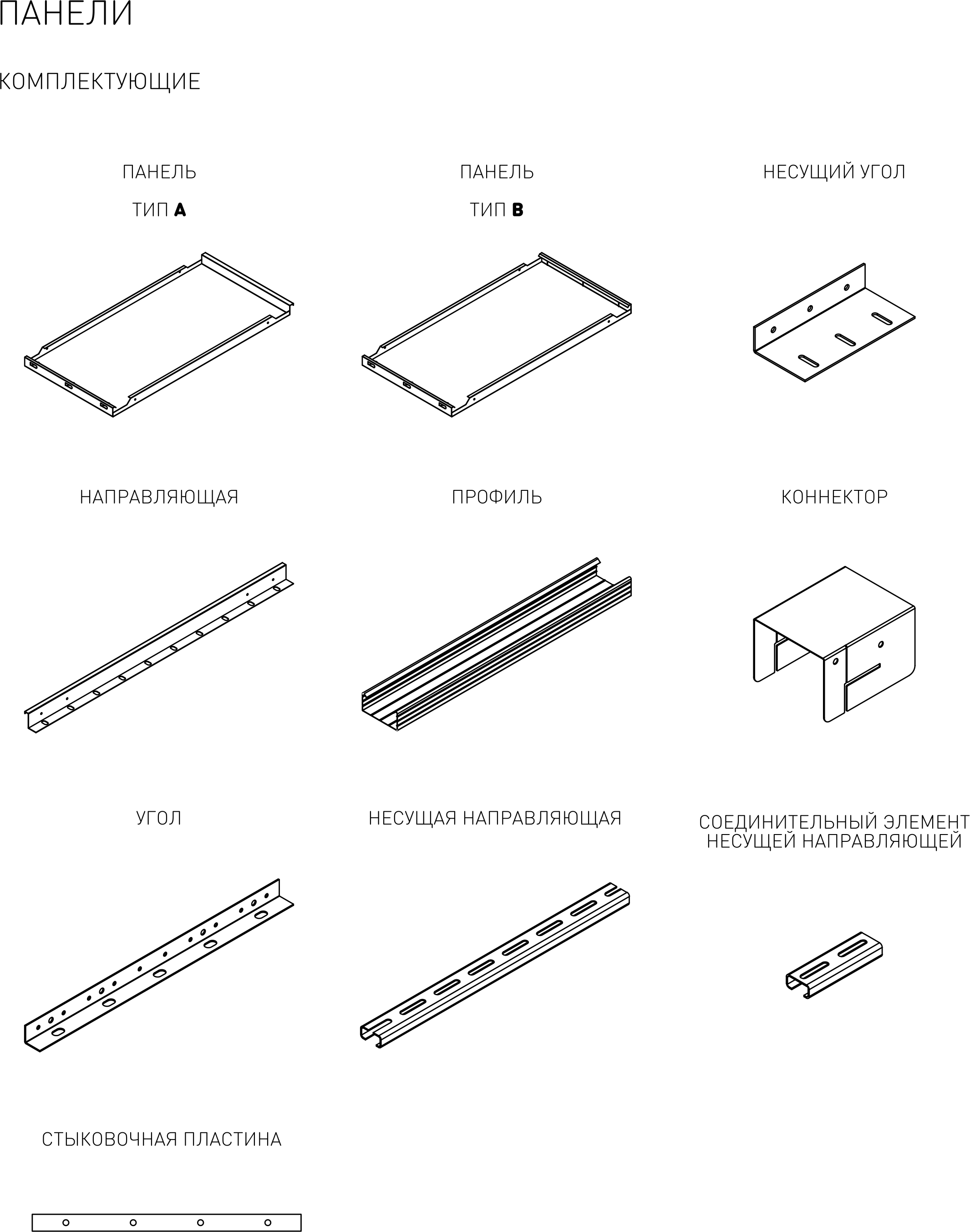 Все элементы изготавливаются из оцинкованной стали, алюминия или нержавеющей стали.