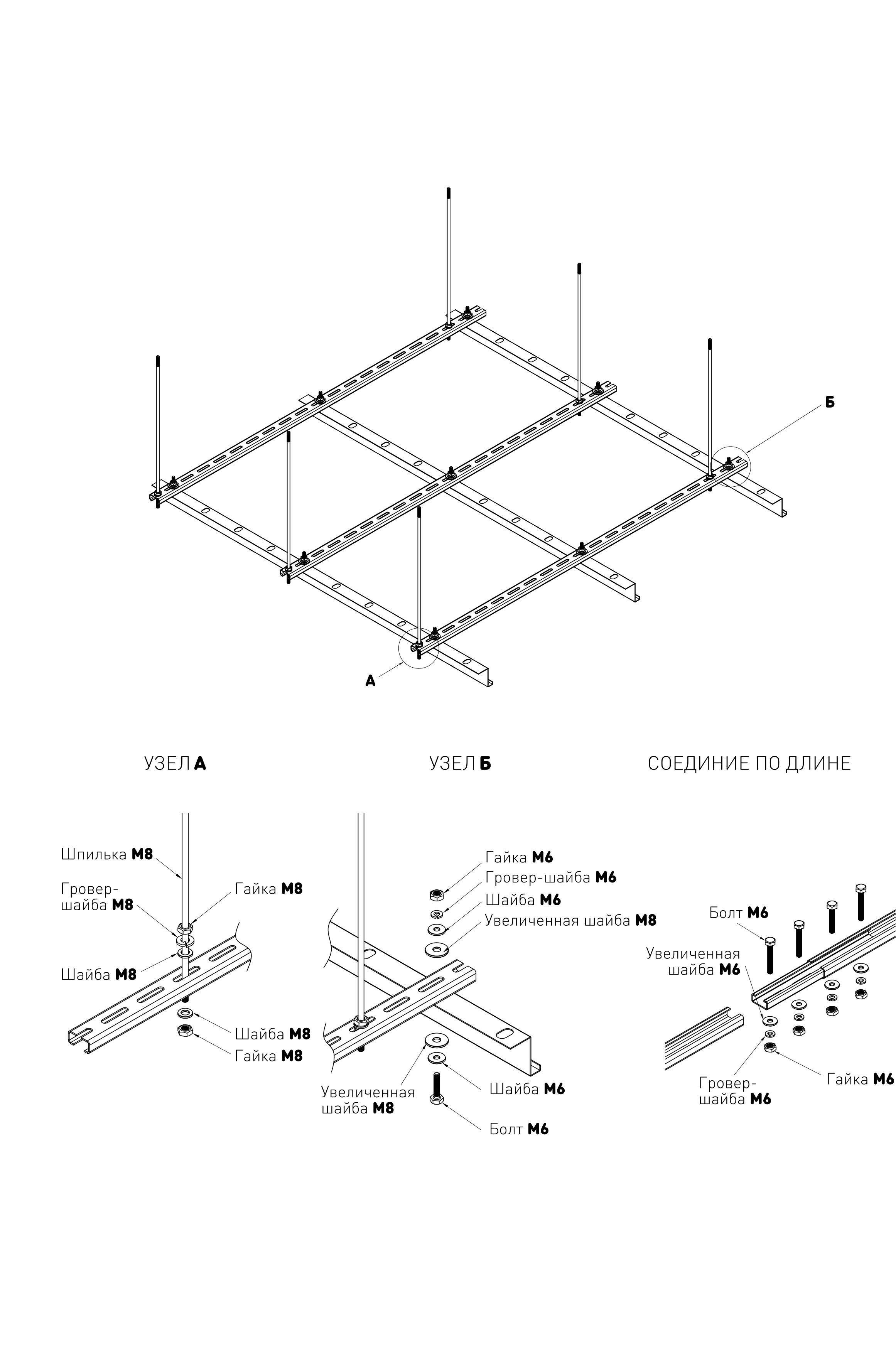 - Несущий L-профиль 24×24 мм — устанавливается по периметру и вдоль рядов.