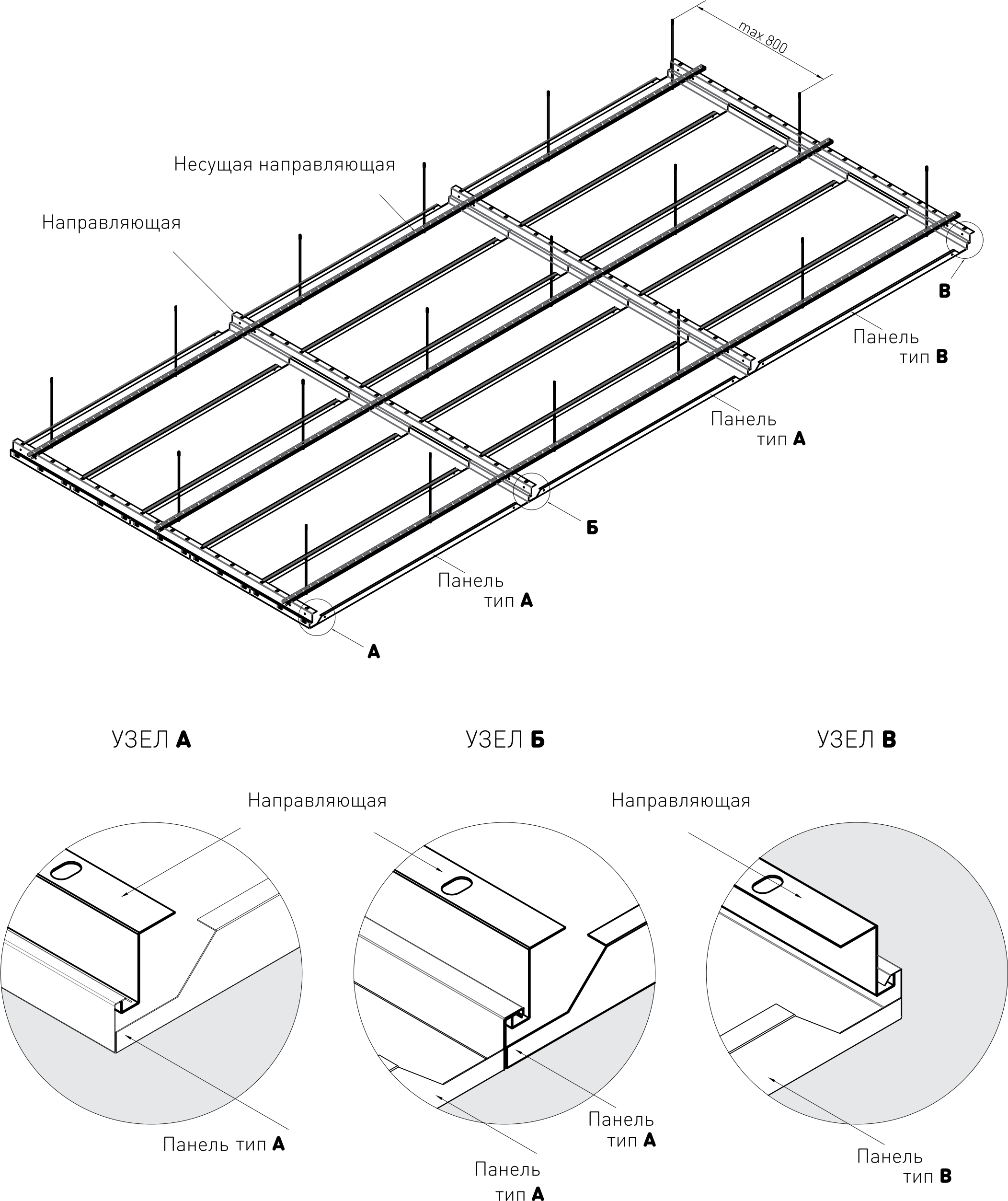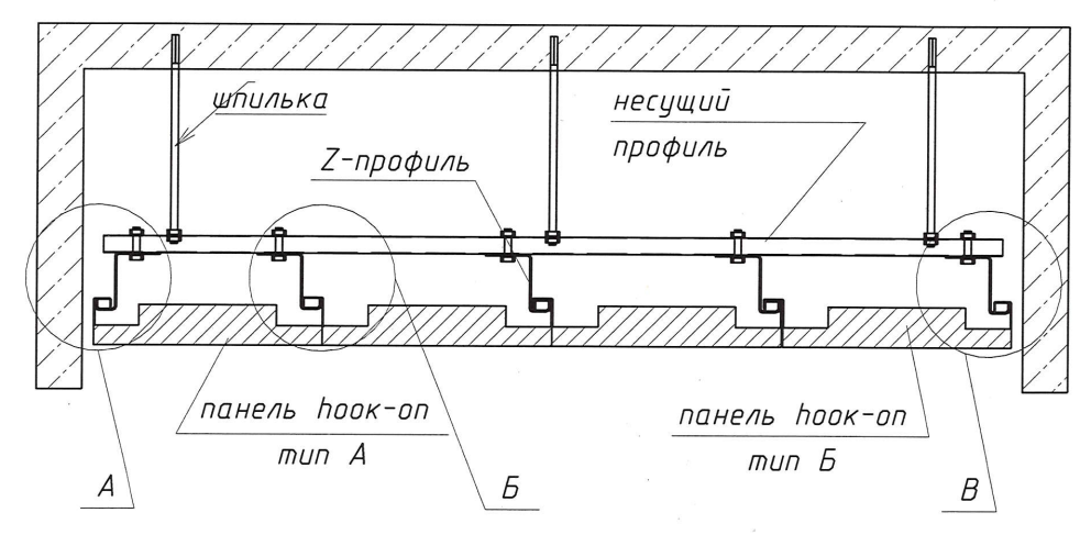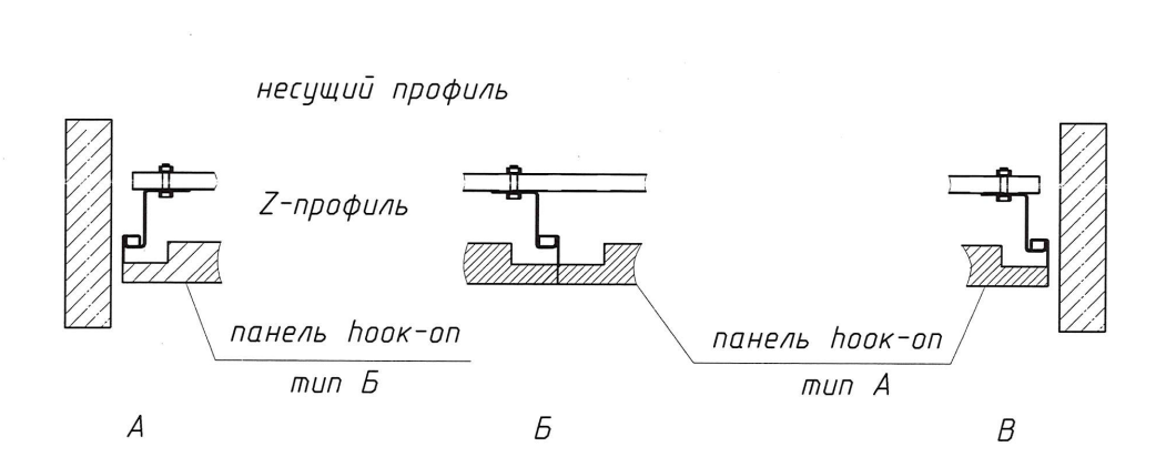 - Z-образный поперечный профиль — крепится к L-профилям и служит основой для панелей.
