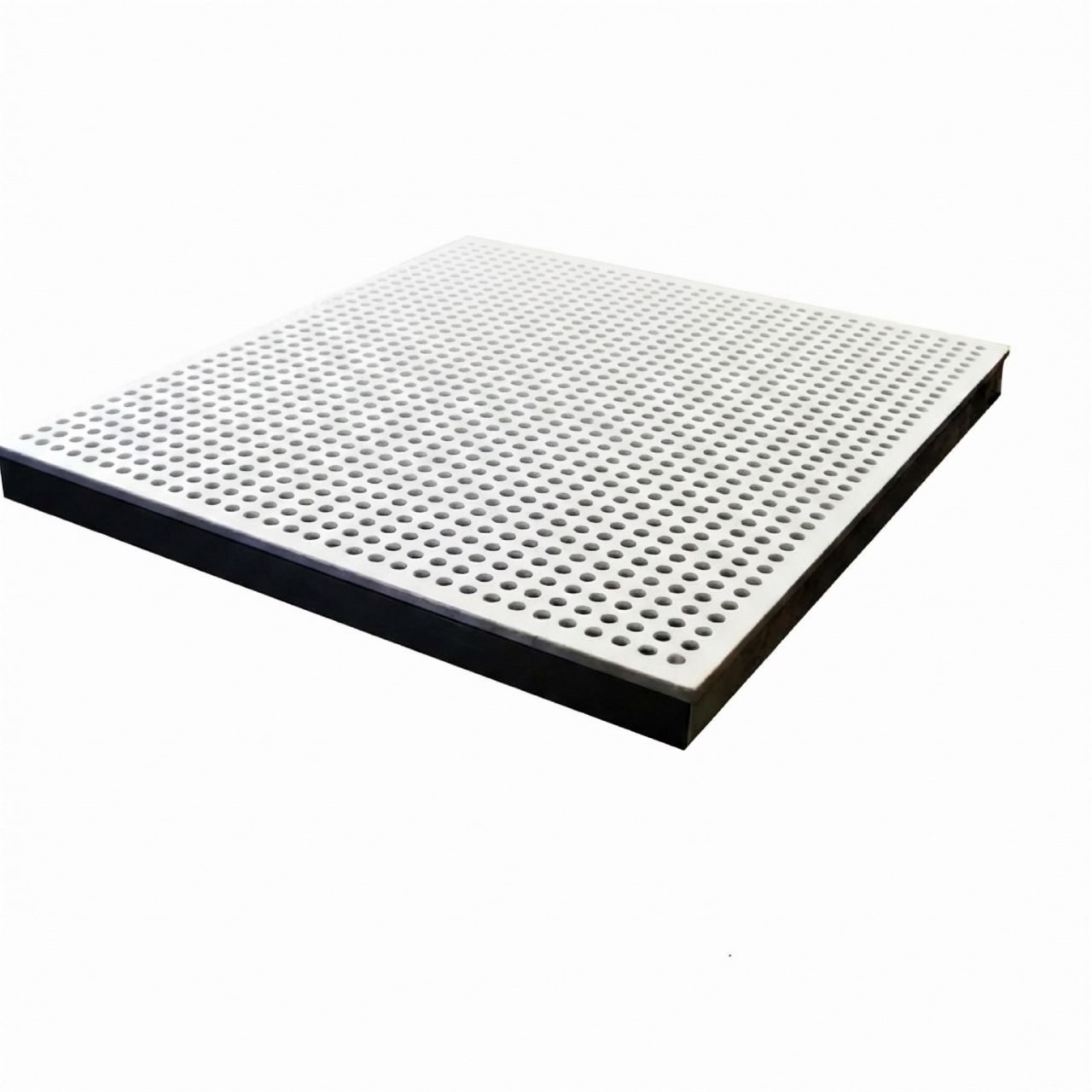 - Перфорированные панели — с отверстиями, обеспечивающими циркуляцию воздуха. Процент перфорации может составлять 10–28%, а в специальных исполнениях достигать 55%. Это позволяет использовать фальшпол как элемент системы вентиляции и охлаждения.