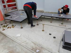 Поставка и монтаж фальшпола из ДСП толщиной 38 мм со сталью снизу и с антистатическим ПВХ сверху в школу №58. Общая площадь 160 м2