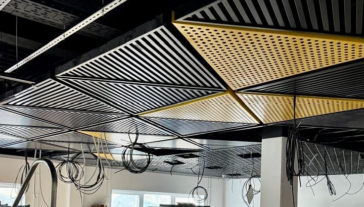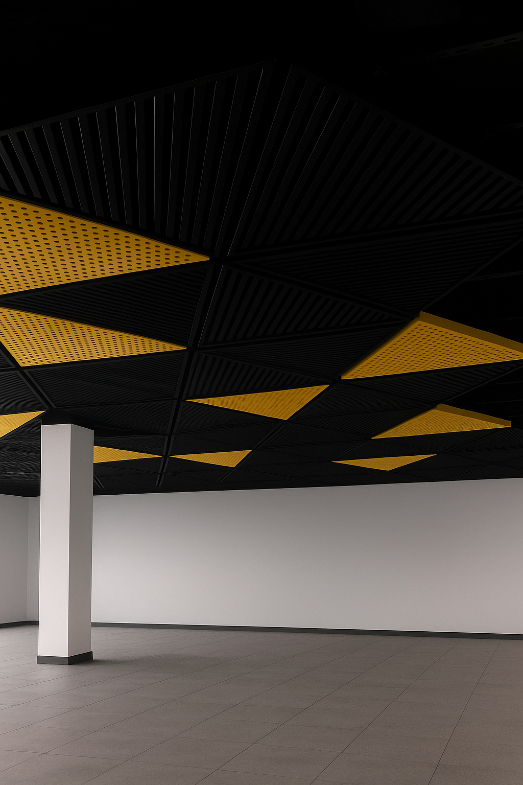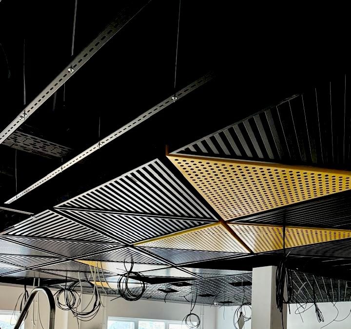Современные архитекторы всё чаще стремятся выйти за рамки стандартных решений. Потолочные панели на системе Hook-on позволяют реализовать нестандартные формы — треугольные, трапециевидные, ромбовидные и даже многоугольные конструкции. Такая система обеспечивает точную геометрию, удобство монтажа и чистый визуальный результат без зазоров.